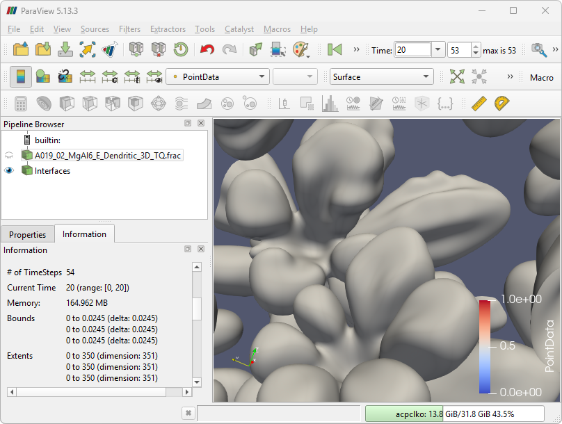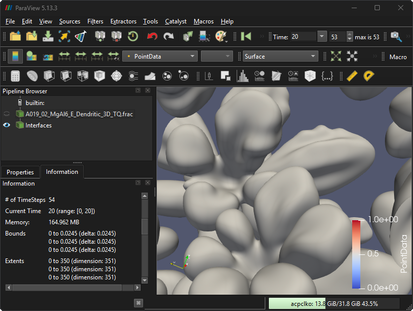 MicPy provides a plugin that allows MICRESS simulation data to be loaded and explored directly inside ParaView.